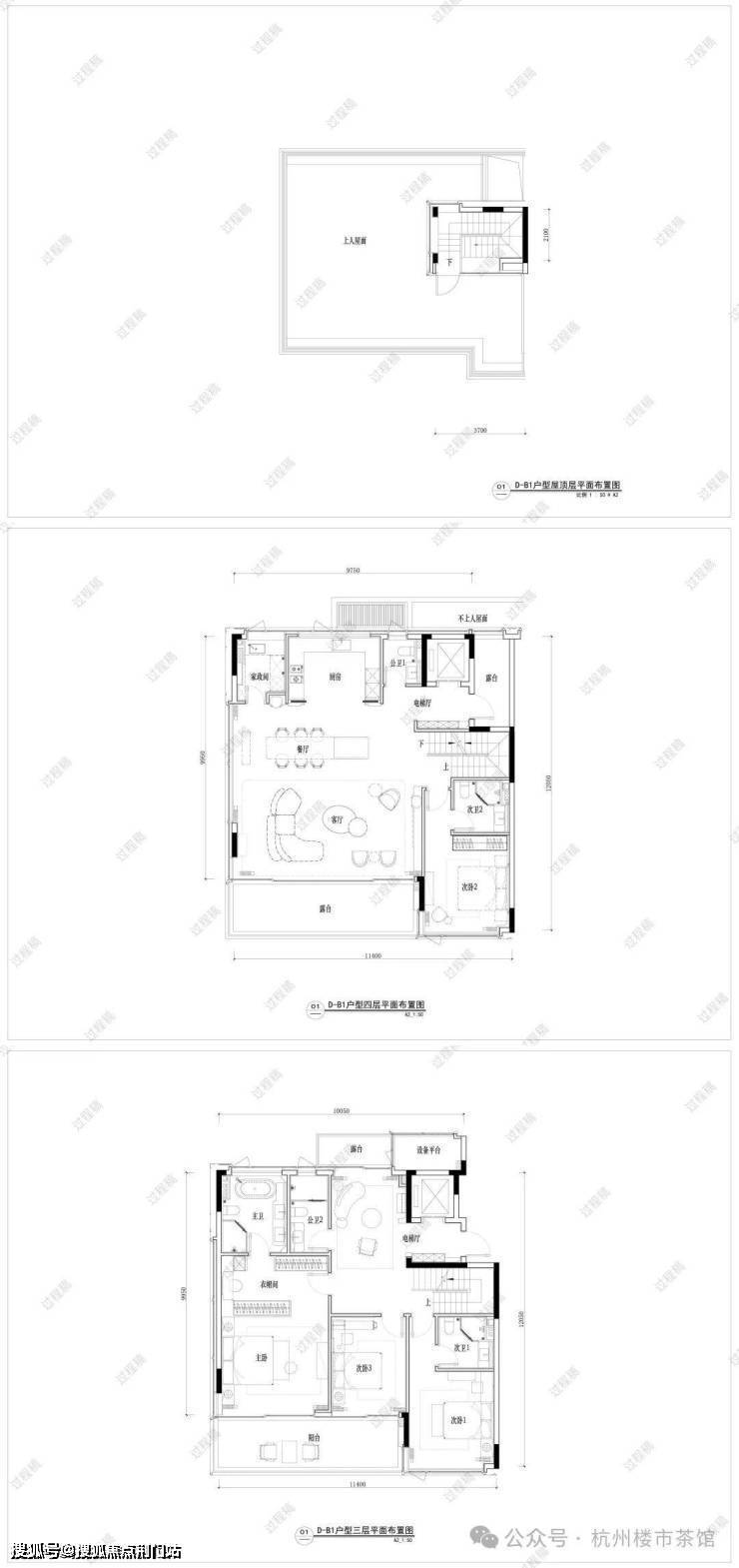 ,上下叠实行动静分离,卧室层位于三层,双套房设计,主卧带衣帽间和阳台;餐客厅层位于四层,并带一个次卧套房,南向带大露台;屋顶层为大露台空间。