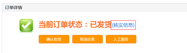 8.核实信息页面,在本页可以详尽的查看账号信息。在本页可以选择【确认收货】【取消交易】【VIP服务】,请尽快核实商品信息,12小时后不能取消交易。如不小心关闭本页可以在“个人中心-我是买家-已支付订单”中继续操作。