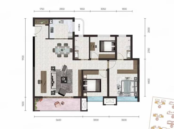 西安信达辰樾府售楼处电线㎡户型,位于交通便利、生态优美的核心区域,融合现代东方美学与尊奢生活。