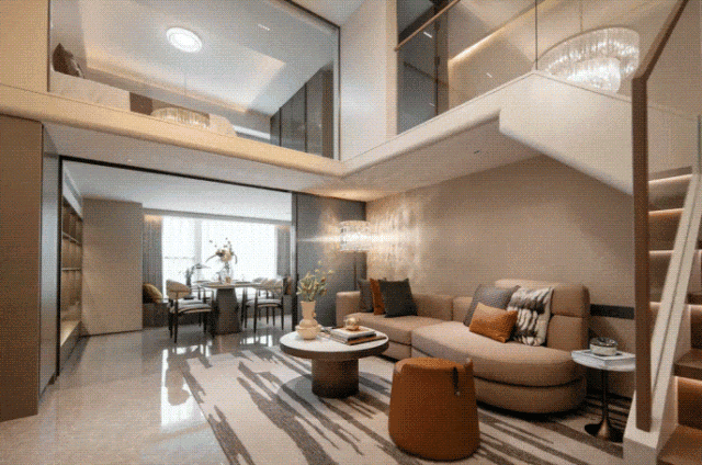 云门中心LOFT公寓的空间设计极具特色,约4.2米层高创新设计,打造出通透大气的空间感。产品设计充分考虑了空间利用的灵活性和功能性,如B1户型约70㎡两室两厅一厨一卫设计,约4.3米面宽,全幕墙落地窗,光景无限,可俯瞰云城;约4.2米层高挑空客厅,营造轩朗大气的空间感受。