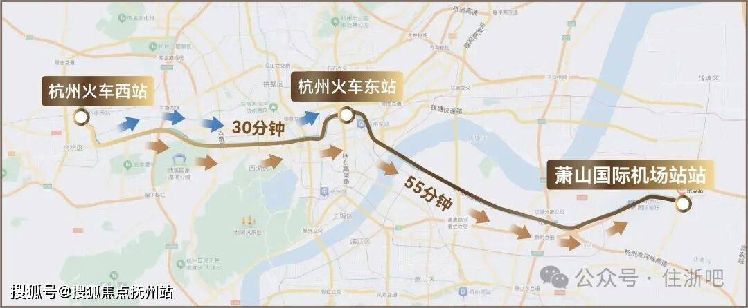 可在杭州西站换乘地铁19号线,贯穿东西,直达杭州机场,国际时速,通达世界。