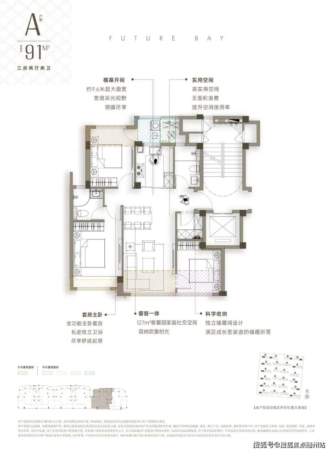 91㎡起步三房做到三开间朝南,约9.6米超大面宽搭配27㎡餐客厨一体化空间,最小卧室也有约9.5㎡。居然还带一个储藏间!小户型也不显逼仄。