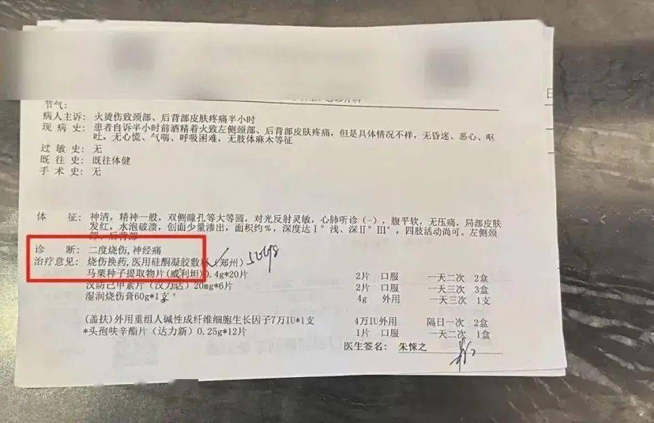 朱女士说,当时在技师的推荐下做了拔火罐项目,可意外就发生了,“用玻璃的大口径火罐,点了火之后罩在我身上的一瞬间,直接在我身上着火了,起火了从脖子一直烧到背后,烧了将近大概六七秒钟,我当时一直在尖叫,当时直接用手拍掉的。”