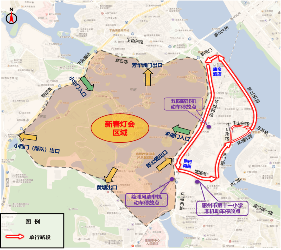 为做好灯会期间交通安全保障工作,确保活动顺利举行,给市民游园赏灯提供安全便捷的出行环境,惠州市公安局交通管理支队根据《中华人民共和国道路交通安全法》等有关法律法规,将对西湖周边部分路段实施临时交通管制。现将有关事项通告如下: