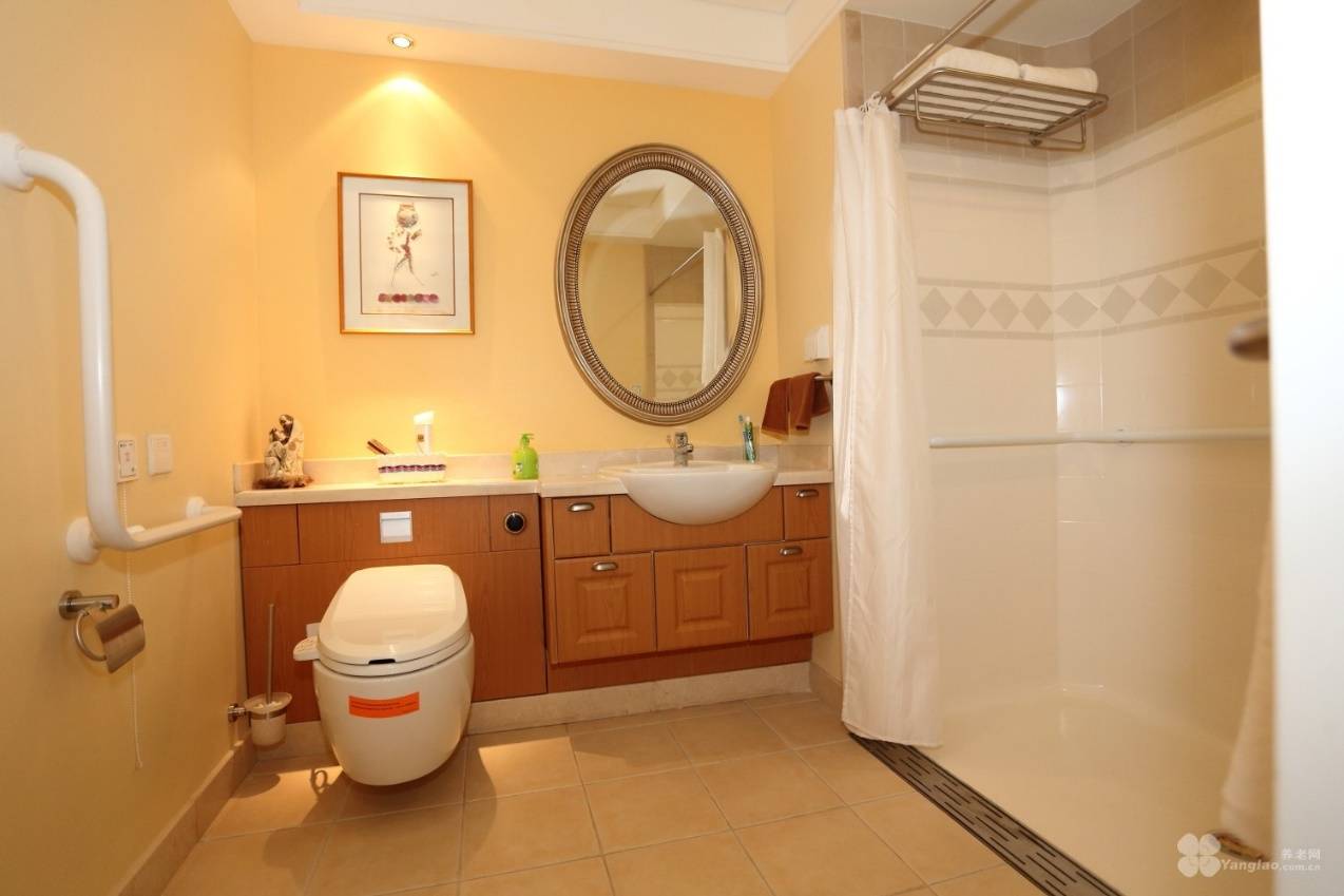 国际设计,温馨如家!双井恭和苑采用高低错落的建筑布局,迎进更多阳光与绿意,配套5000平米中庭绿地、全天开放的屋顶花园,让长辈在城市核心区,也能亲近自然、舒缓身心。室内采用古典家具、电动升降沙发等适老配置,每个房间都配有橱柜、冰箱、电热水壶、独立卫生间,卫生间配备整体淋浴房、高档卫生洁具及智能温水洗净烘干抗菌坐便器,24小时提供饮用水与生活热水,细节处尽显人性化,营造家一般的温馨氛围。
