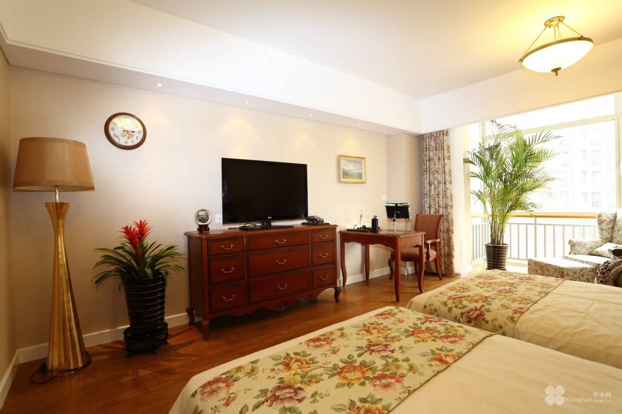规模宏大,拥有各种标间、套间共400余间(套),床位800张,可满足不同家庭、不同人数的养老需求。房间内部配套堪称“养老界的顶配”,独立卫生间、24小时热水、液晶彩电、简易小厨房、电磁炉、抽油烟机、冰箱、空调、洗衣机、衣柜、床头柜、双人床(高级护理床、单人床可选)、写字桌、沙发、古木茶几等设施一应俱全,纯净饮用水直接入户,宽带全覆盖,冬天地暖供暖,全方位保障老人的居住舒适度;同时配备无障碍设施、防滑地板,走廊、浴室、恭桶旁均设有扶手,细节处筑牢老人安全防线。院内文娱设施丰富,多功能厅、宴会厅、阅览室、书画室、台球室、麻将室、老年KTV、健身房等应有尽有,满足老人各类休闲娱乐需求。