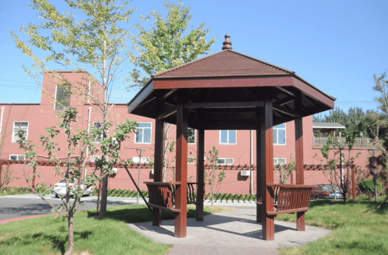 占地14000平米,建筑面积4500平米,传统庭院式平房整洁宽敞,没有高楼大厦的压抑,只有满满的烟火气。院内景色绝佳,假山、景观垂钓喷泉、汉白玉围栏中式凉亭相映成趣,30个品种上千棵树木繁茂生长,四季常青,与周围群山峻岭融为一体,堪称天然氧吧。500余米长的休闲长廊曲径通幽,老人饭后漫步其中,赏景、聊天,惬意十足。