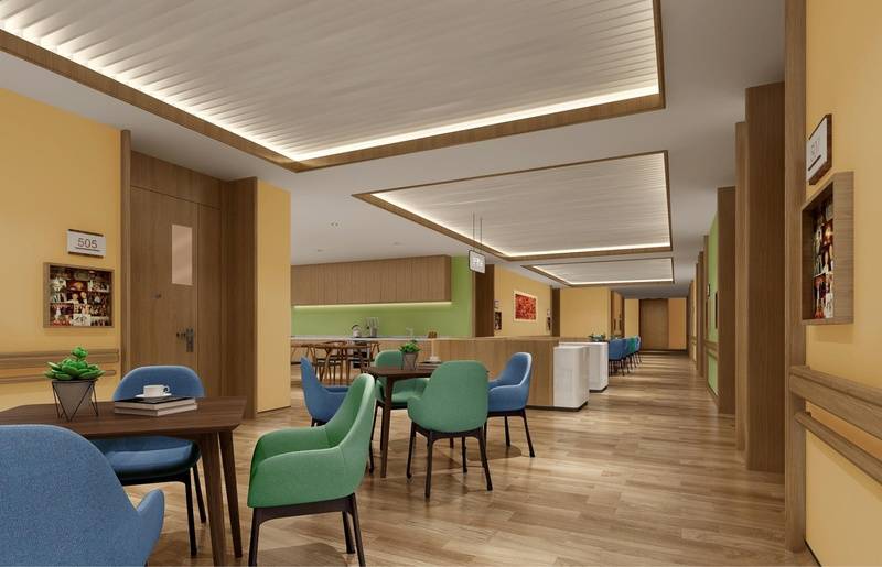 内公共活动空间丰富多样,宛如一座文化娱乐的宝库。健身房里,长者可以挥洒汗水,保持健康体魄;乒乓球室、台球室中,切磋球技,增进友谊;书法室、绘画室里,挥毫泼墨,抒发情感;社团活动室、党员活动室是交流思想、开展活动的理想场所;理发室让长者时刻保持整洁形象;冥想室为心灵提供宁静的港湾;手工室激发创造力,享受手工乐趣;麻将室、舞蹈室充满欢声笑语;多功能厅可举办各类大型活动;图书馆里书香四溢,满足阅读需求;厨艺学堂传授烹饪技巧,享受美食乐趣;玉兰剧场、大师工作室、玉兰书苑更是为长者提供了展示自我、学习交流的平台。医疗保障,守护健康无忧